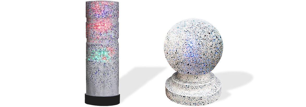 新型路障石材具有擋車功能,提升場所的形象和安全性,夜晚展現出特別絢麗的效果